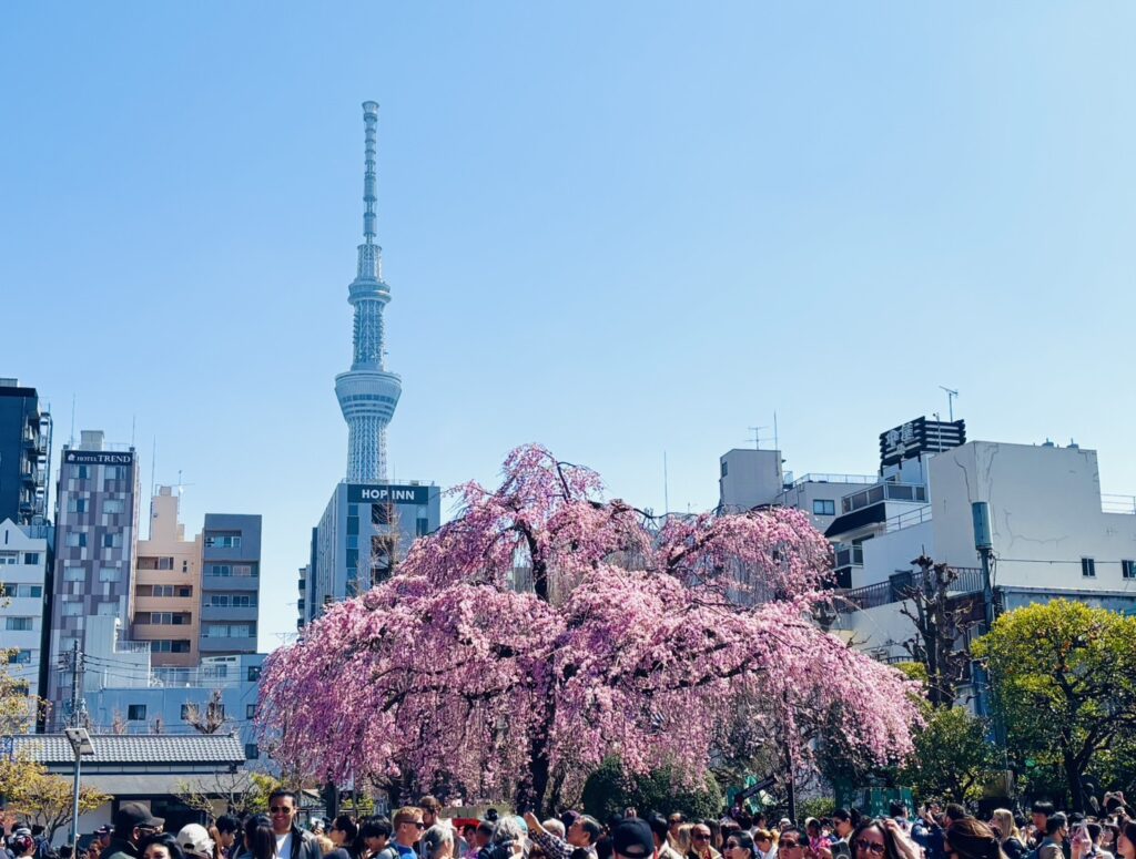 春の桜の中続く雨。